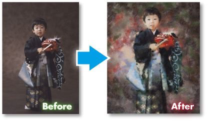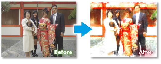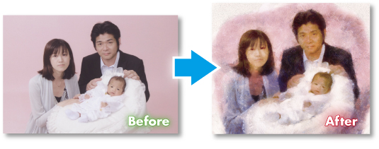 子供の誕生から、お宮参り、七五三、入園式、入学式、卒業式、成人式など家族が成長する度にイベントがいっぱい!! デジタルカメラで撮影した写真、印画紙にプリントした写真も油絵風キャンバス印刷することが可能です。 おじいちゃんやおばあちゃんからのプレゼントとしても、大変喜ばれています。