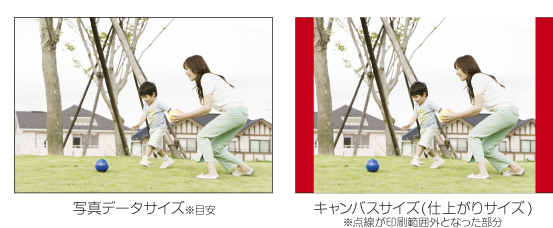 写真データとキャンバスの比率が違うため、一部切り抜き処理を行います。 予めご理解ください。
