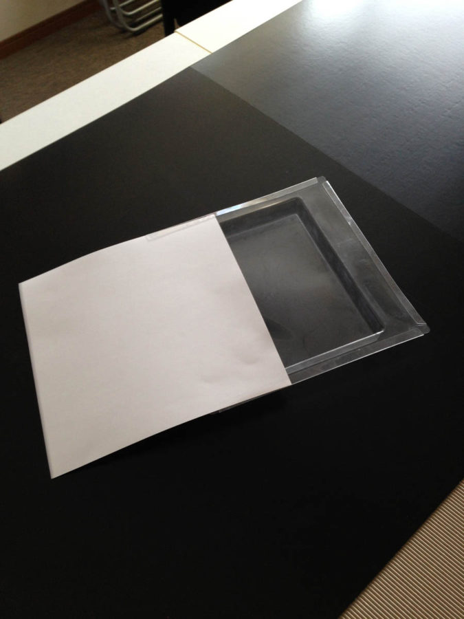 文具で小物なのでブリスター内には商品を固定出来る透明なスペーサーを入れて商品を固定します。