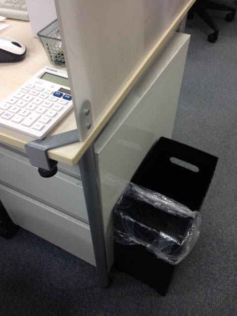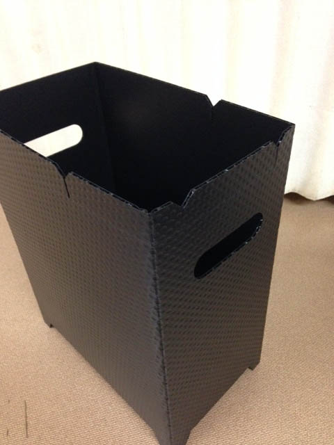 先日、事務の社員よりゴミ箱を作って欲しいとの要望で、なるべくコンパクトで、机回りが邪魔にならないようなものをサンプルカッターで製作しました。
