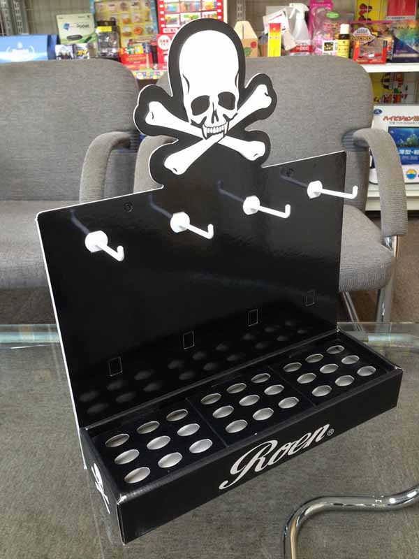 吊り下げタイプの商品と置くタイプの商品と2種類の商品を同時に陳列して販売したいとリクエストがございました!
