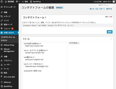 1「Contact Form 7」コンタクトフォームの編集画面を開きます。