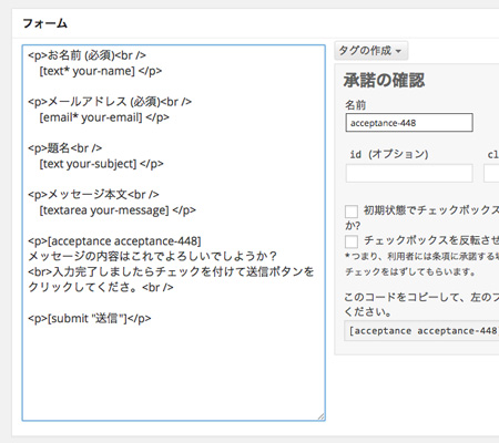 問い合わせフォームのプラグインは「Contact Form 7」を使用させて頂いてます。
