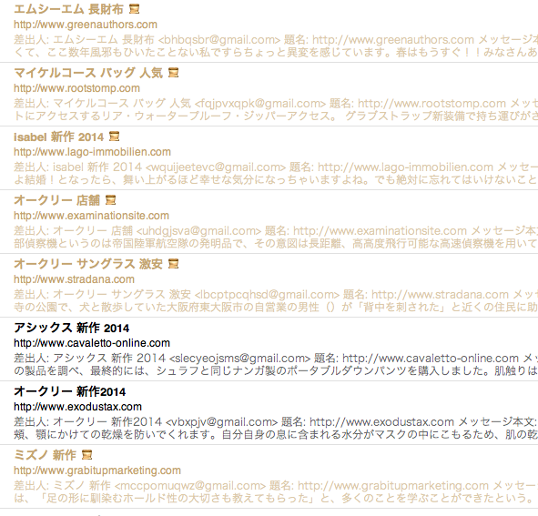 サングラス、バッグ、靴。このキーワードやタイトルでメールがくる場合が多いです。