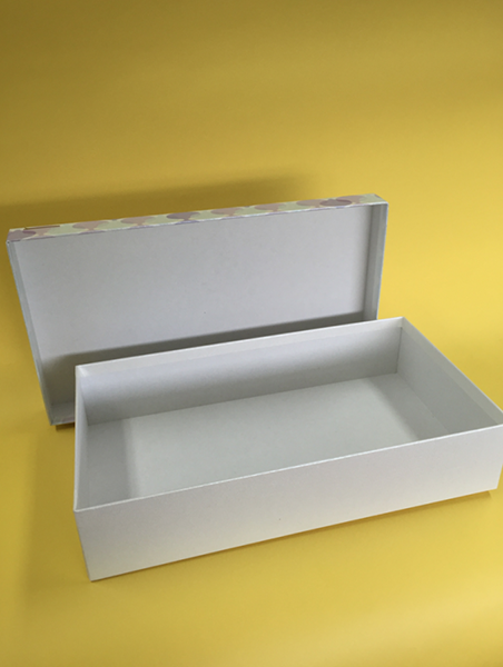 貼り箱とは、名前の通りベースとなる厚紙に、様々な色やデザインの紙(薄紙)を貼って出来る箱です。 ベースとなる厚紙は強度が強く、