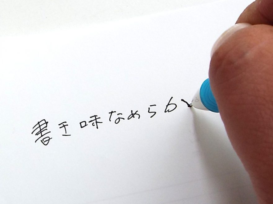 インクがゲルインキといって、スッーと掛けるのにしっかりとインクがでて、字が読みやすいボールペンですペン先も太くなく、私は普段使いでも愛用しています。
