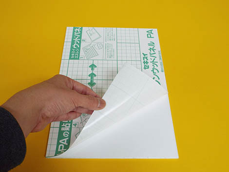 3、剥がした方(糊が付いている)方に、A4プリントを貼り付けます。