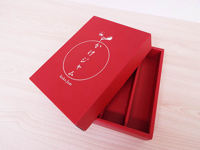 ハナブサ デザイン様のご依頼で、越谷市オリジナルジャム瓶を3本入れる箱を作りたいとの事でした。