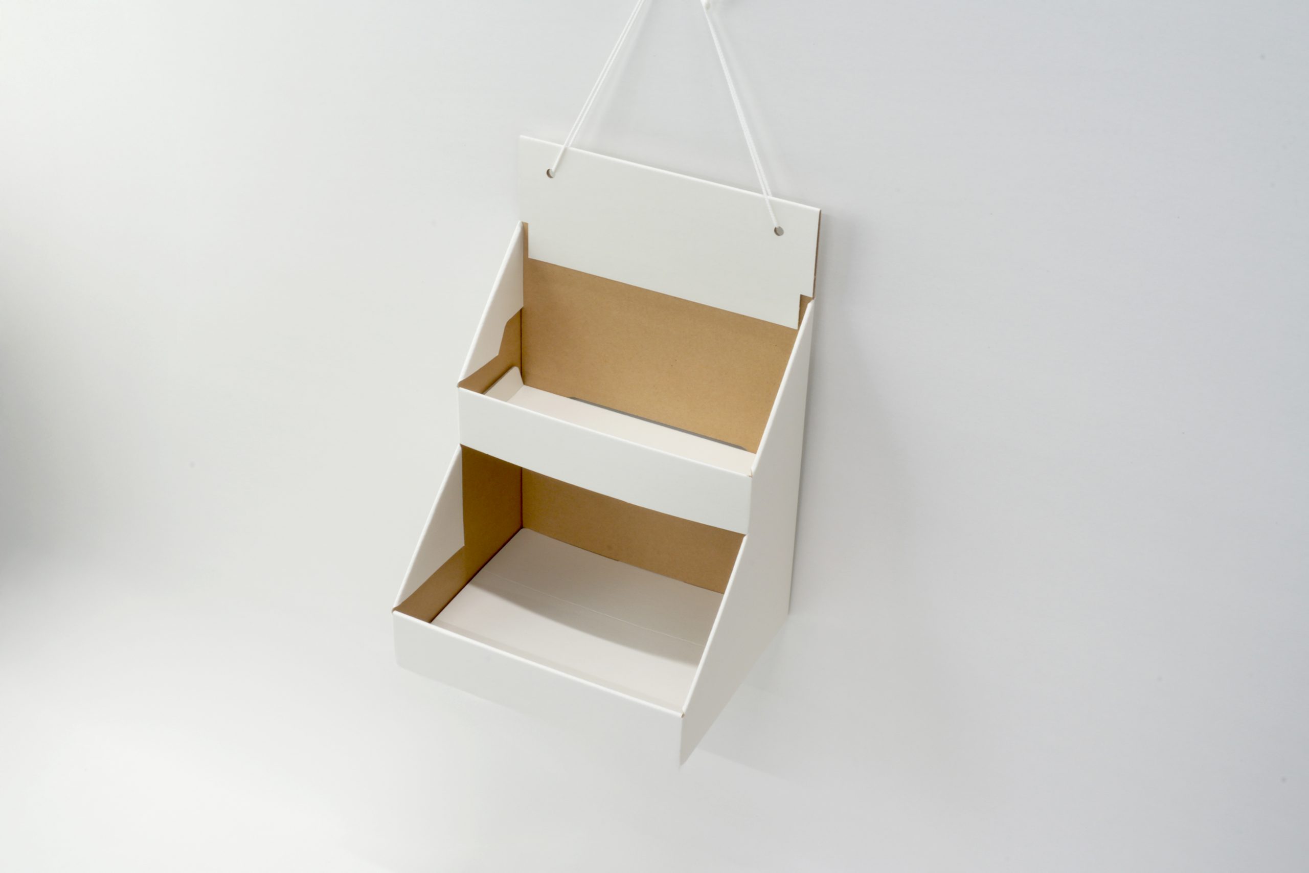 重量物や形状が不揃いな商品の吊り下げ販売にお困りの方に最適なハンガーゴンドラ什器。強度があり、バラバラな商品もまとめて陳列でき、売場を活性化させる効果があります。