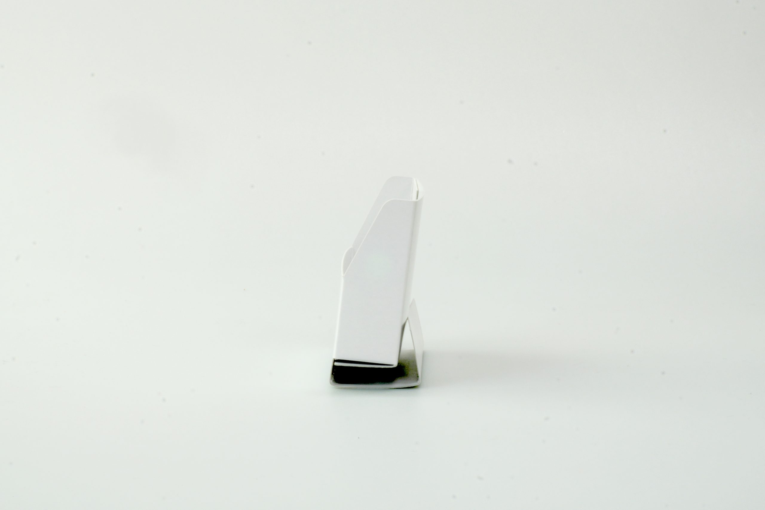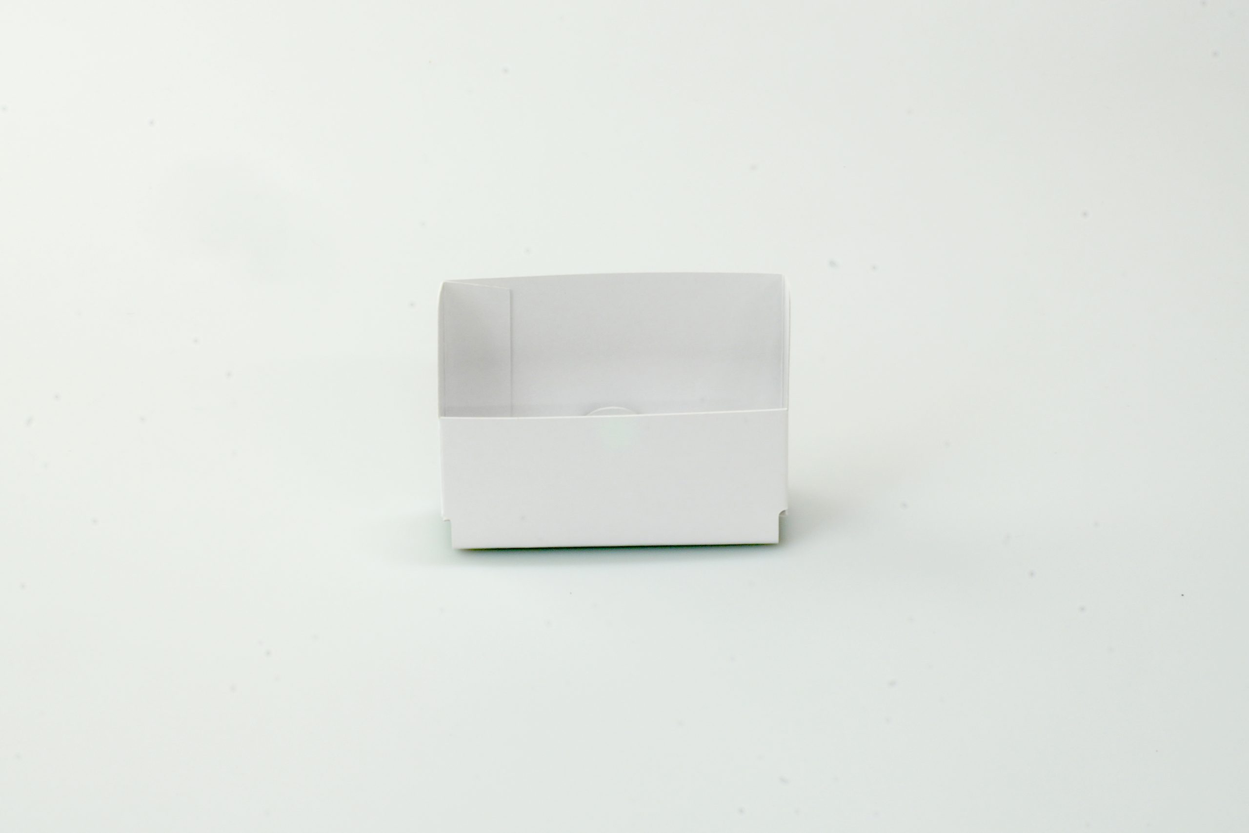 弊社オリジナルの名刺箱は、名刺を斜めに展示できる斬新な形状が特徴です。展示会やセミナーの受付で、名刺を効果的にアピールし、ユーザーの興味を引きます。