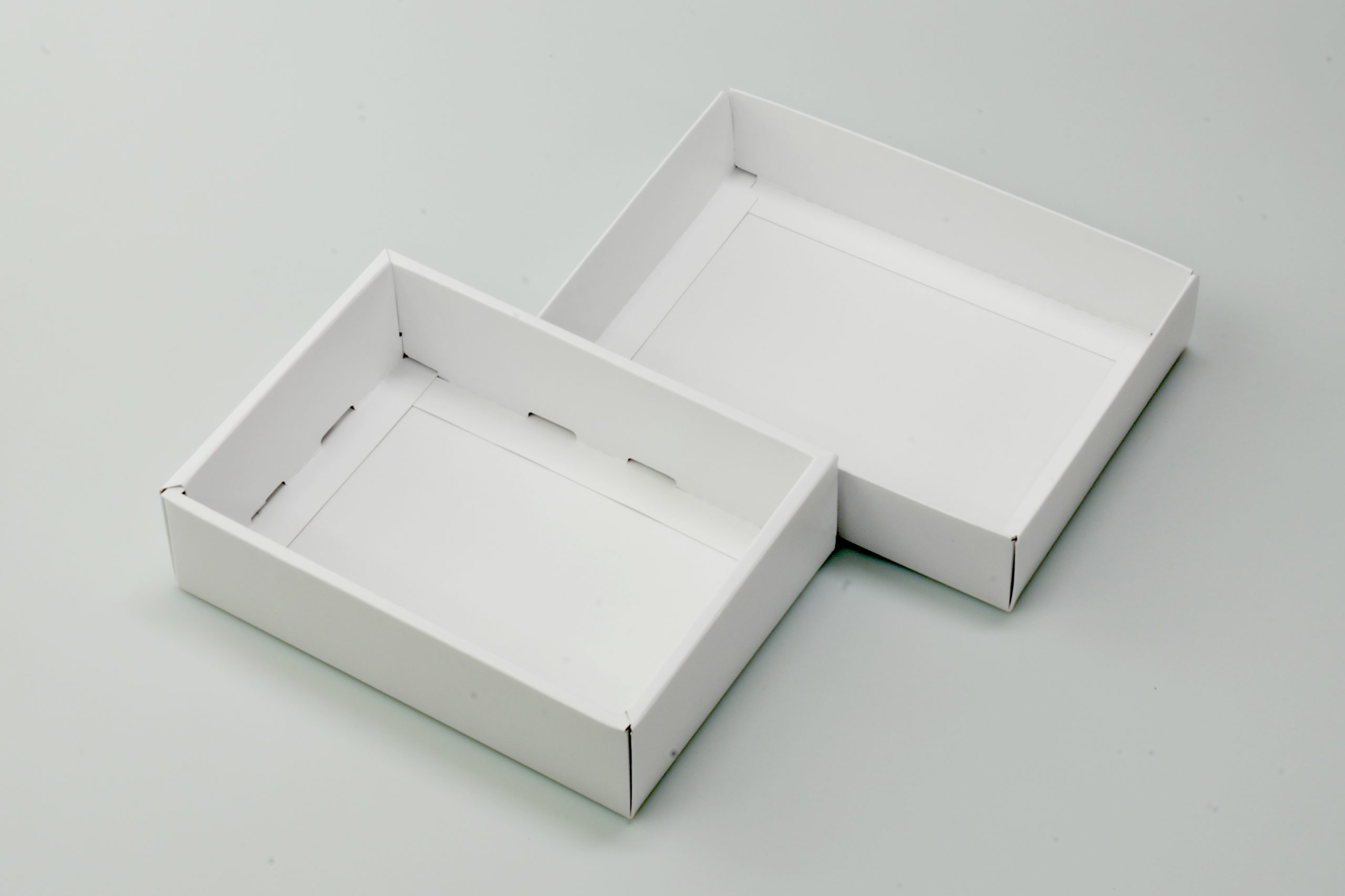 贈答用パッケージに最適なのが、この身+蓋かぶせ箱です。重箱のように蓋を上からかぶせるシンプルで上品な形状が特徴で、特に食品関係では和菓子や洋菓子の包装によく使われています。印刷を施すことで高級感を演出でき、アパレルやギフト用品にも幅広く対応可能です。見た目の美しさと実用性を兼ね備えた、人気の高いパッケージ形状です。