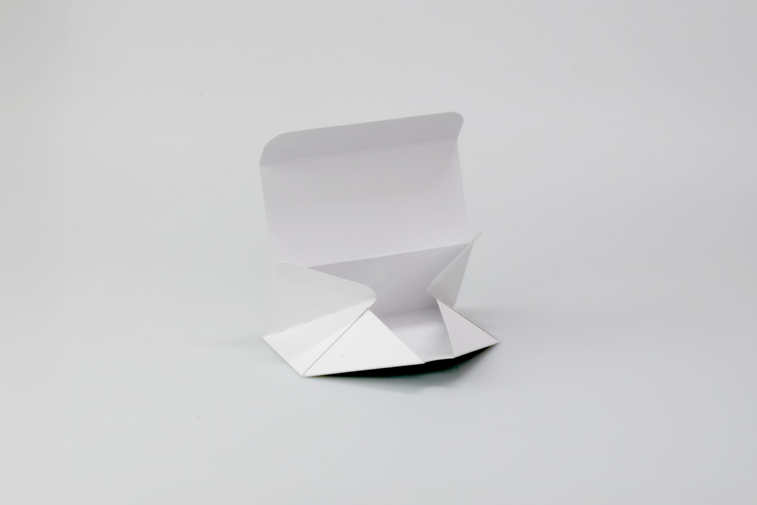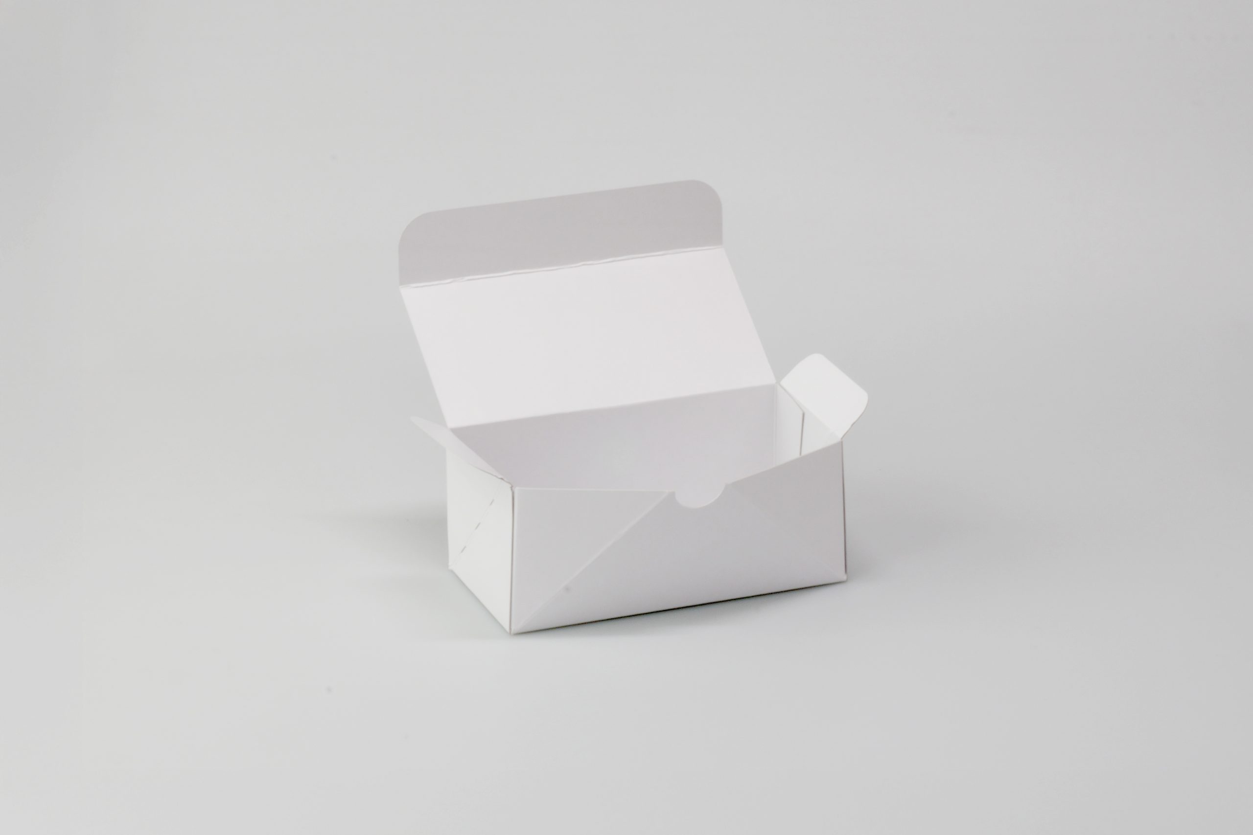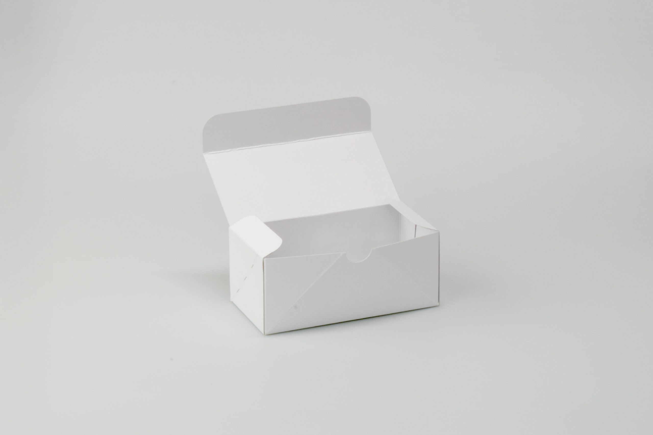 4コーナー箱は、重い商品や組み立ての簡素化に最適です。4隅を折り込み貼り付ける構造で、側面を起こすだけで箱になります。蓋付きの一体型や、マチ付きの6コーナー箱も選択可能です。糊貼り費用は高めですが、サイズによっては底ワンタッチ箱より安価に提供できます。