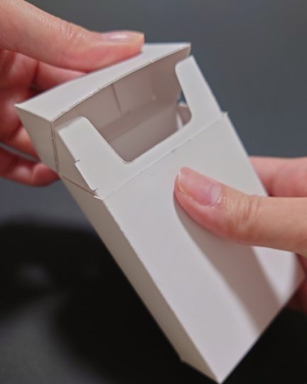 本記事では、大人気のタバコ箱風パッケージをご紹介いたします。本物のタバコ箱は梱包機械で自動充填され、複雑な上、特許もあるので制作できません。