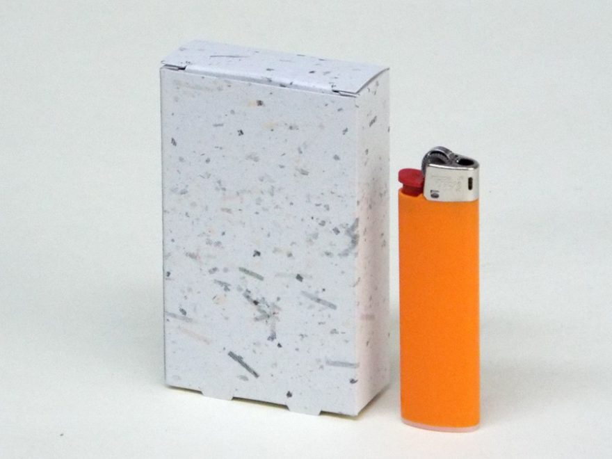 紙幣を抄紙し、厚紙を制作してレギュラーサイズたばこ無地箱パッケージを作りました。