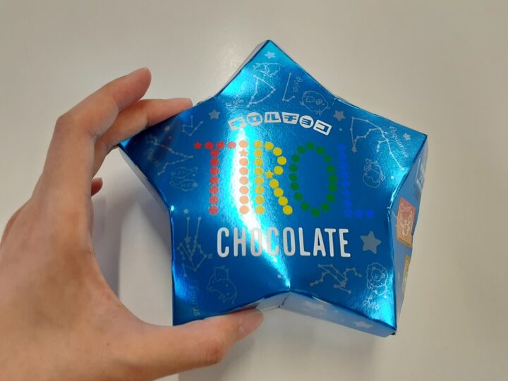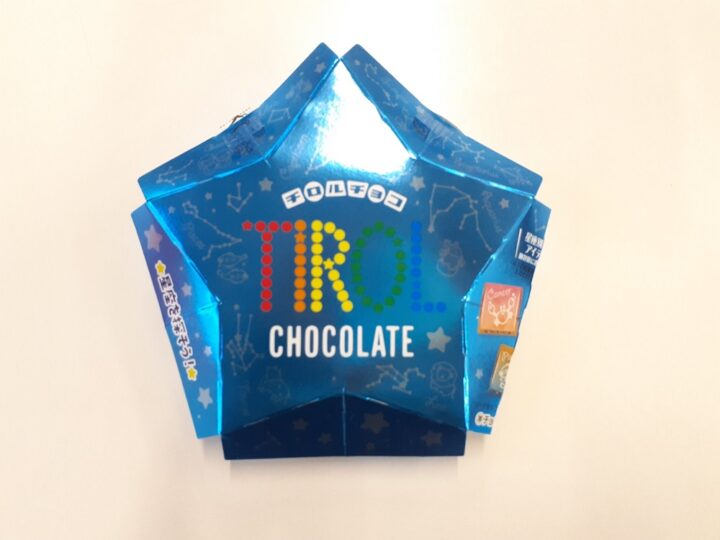 クリスマスにぴったりなお星様型の化粧箱を紹介します。画像は七夕の時期にローソンで発見した星形の箱にはいっているチロルチョコですが、メタル紙が使われていてとても綺麗ですね…。
